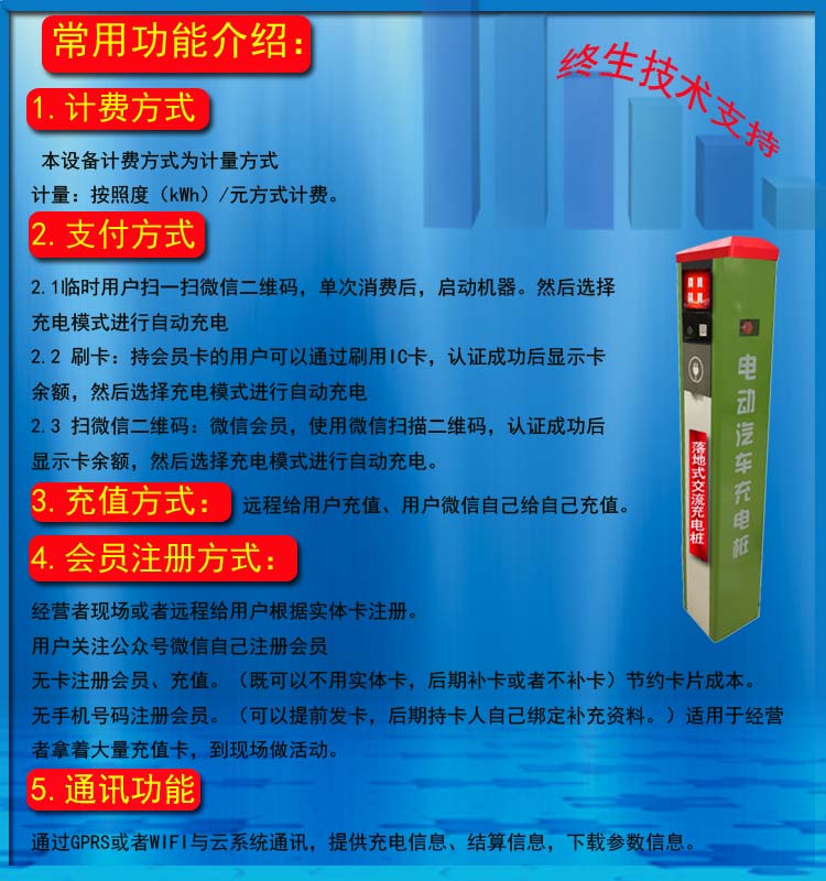 电动汽车充电桩常用功能介绍: