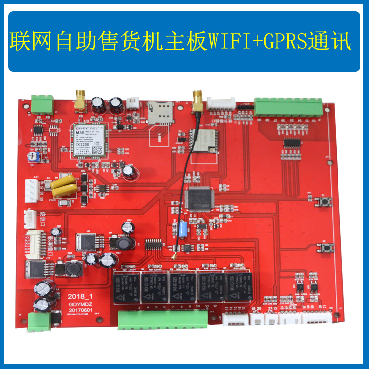 主板特点:七寸触屏显示,一个副板支持8个货道,一个主板最多支持32个副板,即256个货道。可以实现一拖五。2G信号(可升级4G信号)。